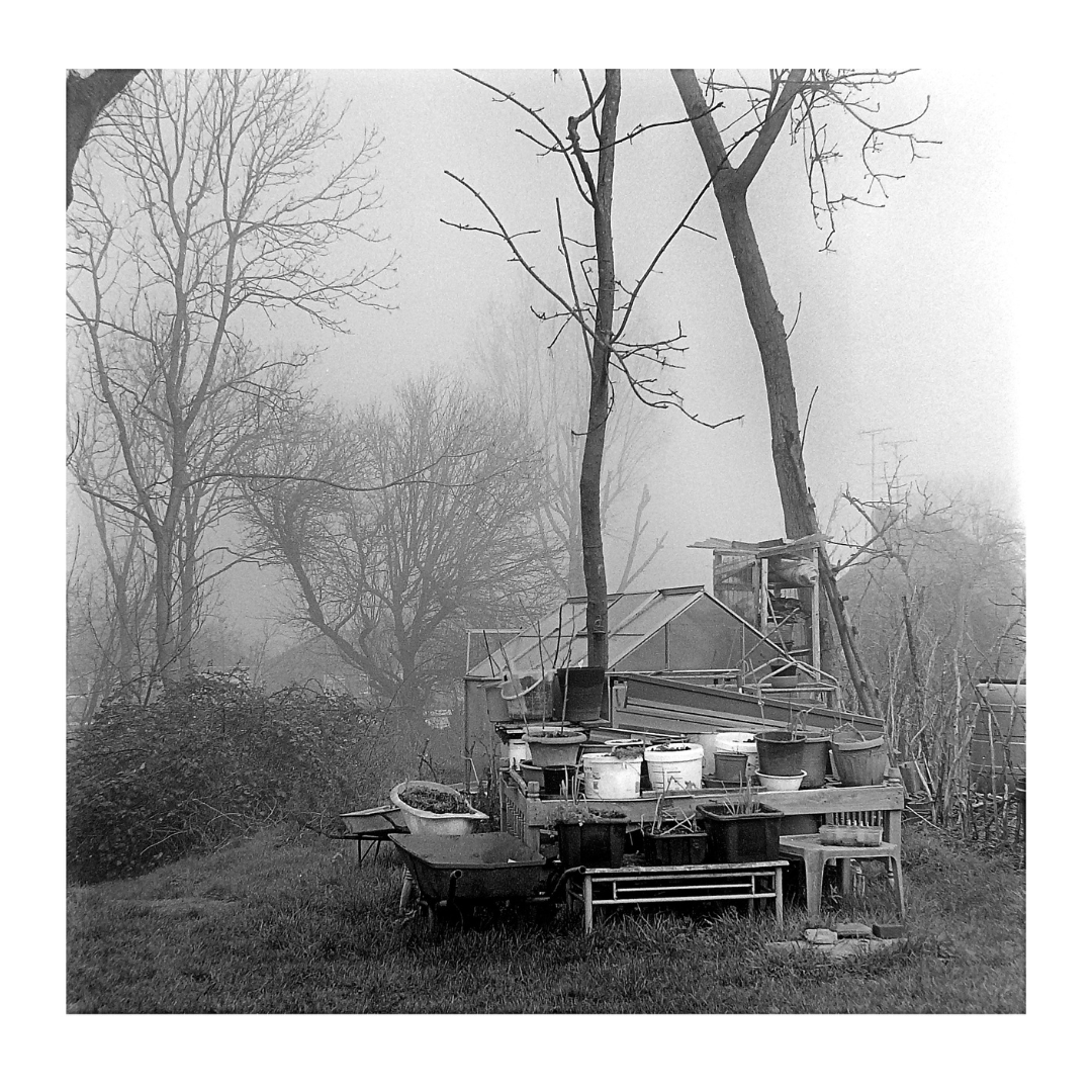 Kothandaraman Sambandan for ‘Marlborough Hill’ – an eerie early morning photograph of an allotment on Marlborough Hill